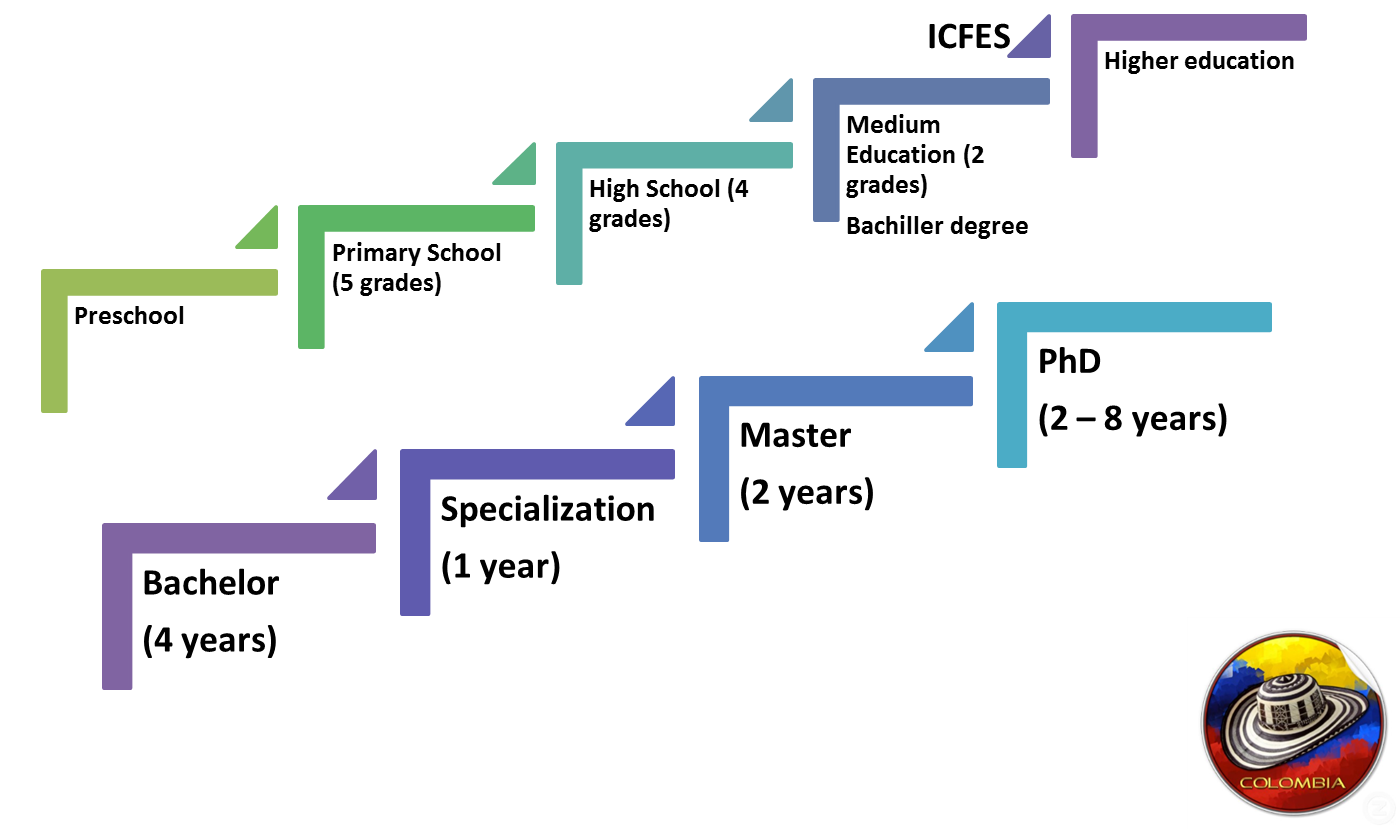 After being accepted, students have to study for about 5 years to get their Bachelor's degree. Considering that there are only 11 years of school and the quality of public Colombian school education seems to be rather low this is necessary. After achieving a Bachelor's degree students can do a Master's degree and then a PHD.
