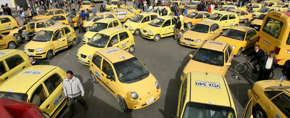 Taxis in Bogota are very cheap compared to taxis in Germany but compared to buses in Bogota they are quite expensive. You should be aware that it is not considered absolutely safe to just stop a cab on the street. In the past sometimes people were not delivered to the agreed destination. Instead the driver would then stop in a different place and let two accomplices into the cab. They would then drive to a cash machine and force the passenger to withdraw money and give it to them. However, the frequency of these incidents seem to have decreased greatly over the past years. The safe option is to call a taxi company (numbers are on the back of the cab. Something like 111 111, etc.) and to arrange a safe ride. The taxi company will then tell you the license plate of the taxi and a code word you have to tell the cab driver when he arrives. This ensures that he is trustworthy. But if you know what you are doing or are with people who know what they're doing you can also stop taxis from the street.