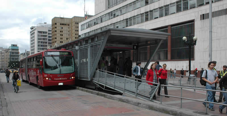 There is a very confusing system of private buses operating on fixed routes in Bogota. In the front window of every private bus is a sign with some abbreviations from which one can deduce on which route the bus is operating. To get on the bus you must simply raise your hand and look at the bus driver. The bus will then stop and let you hop on. A ride also costs about 50 cents. During rush hour you will be stuck in traffic quite often. Again, one should be wary of pickpockets.